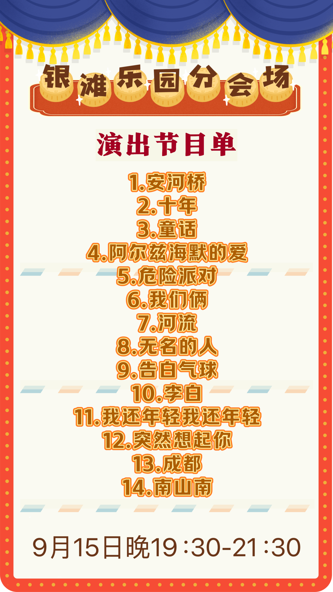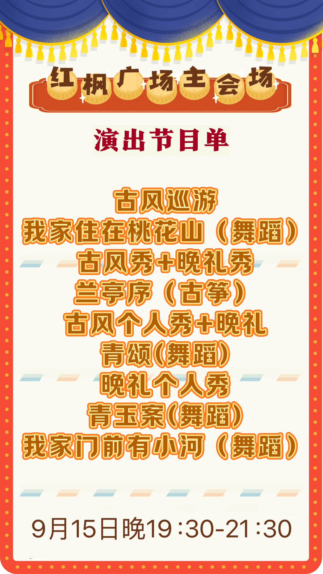 沙澧河景区秋灯会9月15日节目单