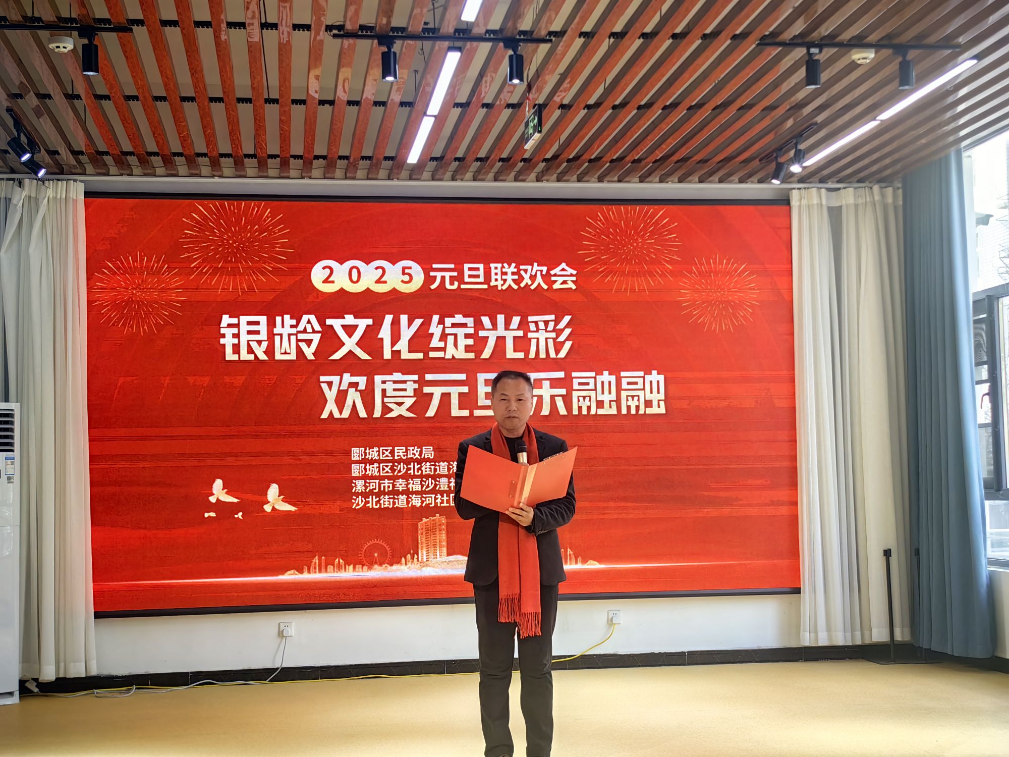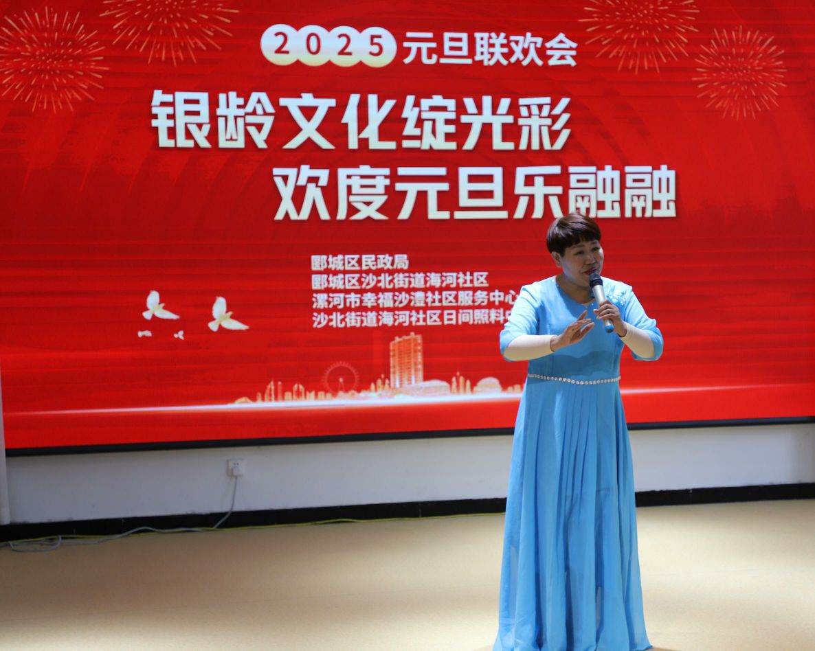 在2025年元旦佳节来临之际,一场精彩纷呈、别开生面的银龄元旦联欢会在漯河市郾城区沙北街道海河社区日间照料中心精彩上演。本次联欢会由郾城区民政局、沙北街道海河社区、漯河市幸福沙澧社区服务中心共同举办,旨在展示社区银龄文化的独特魅力,传递健康老龄化的积极理念,让老年朋友们在欢声笑语中迎接新年的到来。
