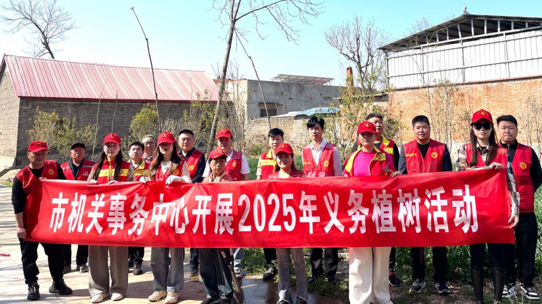 3月26日,漯河市机关事务中心组织党员干部到舞阳县侯集镇苏庄村,开展2025年义务植树活动。