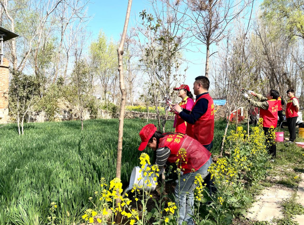 本次活动结合苏庄村实际,通过抚育管护、自然保护等方式开展。活动现场,党员干部们分工有序,配合默契。大家对村内现有的树木以及乔、灌、草植被进行了除草除杂、浇水灌溉、整枝修剪等绿化养护工作。在众人齐心协力的努力下,苏庄村内的绿植愈发葱郁,焕发出盎然生机。