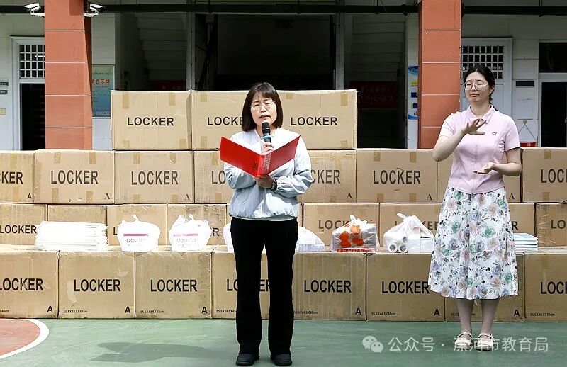 捐赠仪式上,漯河市特殊教育学校校长赵启申代表学校接受捐赠物资。学生代表现场接受爱心捐赠,高伟玲副局长向联谊会颁发"爱心捐赠荣誉牌"。