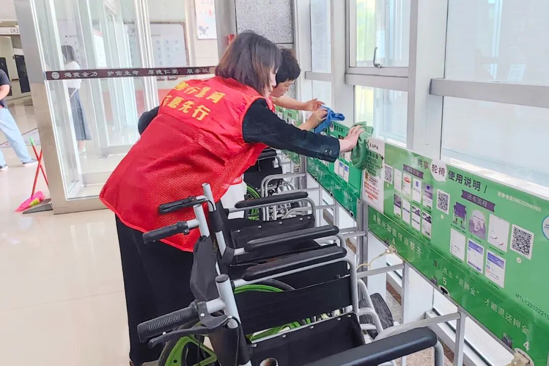 党员志愿者冲锋在前,充分发挥先锋模范作用。他们对大门出入口、大厅、卫生间、楼梯间、停车场、广场道路等人员密集、流动性大的公共区域进行深度清洁。清扫垃圾杂物,擦洗公共设施,更换破旧版面,修剪绿化景观,确保这些区域无灰尘、无丝网、无纸屑、无烟头、无污迹、无积垢、无杂乱。通过这些实际行动,党员志愿者们不仅美化了医院环境,更为患者传递了温暖与力量,展现了医院的文明形象。