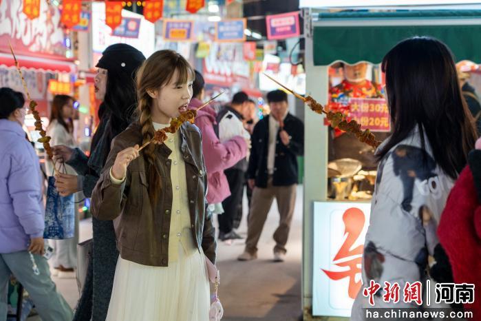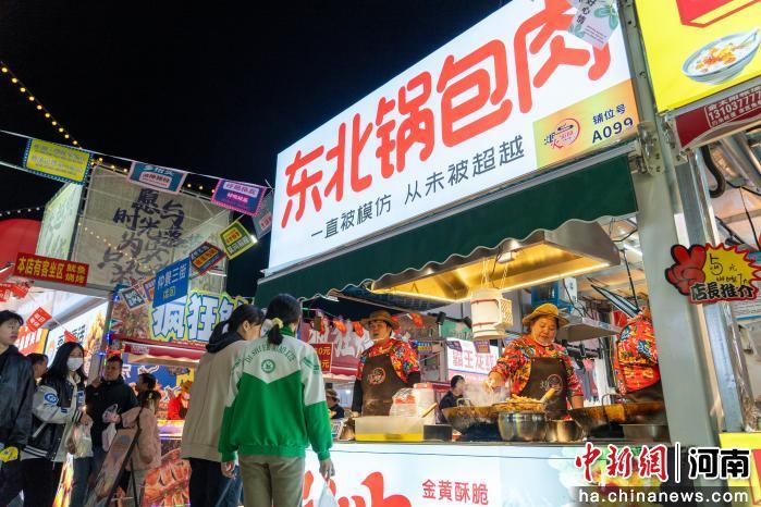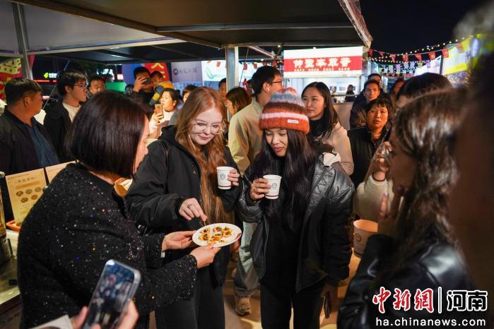 10月22日晚,河南南阳仲景市集烟火缭绕,来自东北的锅包肉、新疆的烤串、云南的昆虫宴等天南地北的特色小吃在此同台竞味,吸引众多市民前来尝鲜,品尝跨越山河的南北风味。