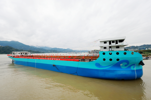 据了解,“葛洲坝”号总长129.98米、型宽22米、型深7.7米,设计吃水6.5米,最大载重量达1.374万吨。该船搭载12组锂电池箱式电源,载电量约24000千瓦时,可快速充换电,续航里程可达500公里。