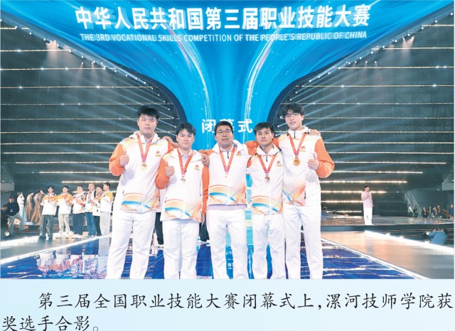 金秋时节,硕果盈枝。在第三届全国职业技能大赛的竞技舞台上,代表河南出战7个赛项的漯河代表团以3金2银4优胜的历史性战绩,刷新了我市在全国职业技能大赛中的纪录。这些选手均来自漯河技师学院(以下简称学院)。这既是学院践行“以赛促学、以赛促教、以赛促建”办学理念的生动注脚,也是专业建设与产业需求深度融合的丰硕成果,更是师资队伍建设与人才培养体系协同发展的有力见证。