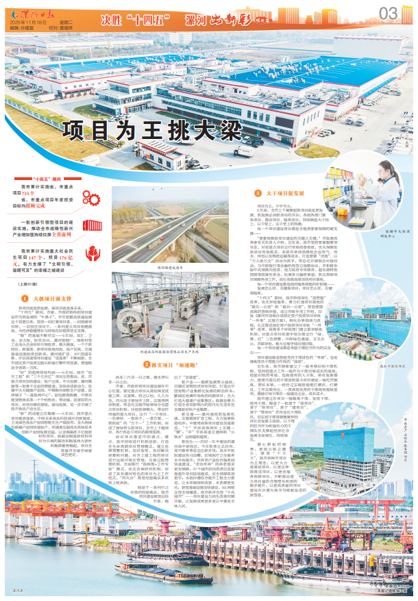 “十四五”期间,市委、市政府始终把项目建设作为抓发展的“牛鼻子”,牢牢把握高质量发展这个首要任务,坚持一切盯着项目看、一切围着项目转、一切扭住项目干,一系列重大项目相继落地,为经济稳健增长与持续向好提供坚实支撑。