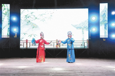 “姑嫂二人去游春,一路说笑一路行……”当《姑嫂游春》的轻快旋律响起时,演员蒋秀芹与姬瑞霞配合默契,以诙谐对白和灵动身段,展现了寻常人家的温馨日常。