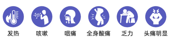 与普通感冒相比,流感起病更急、症状更重。潜伏期通常为1–4天,平均约2天。常见表现包括: