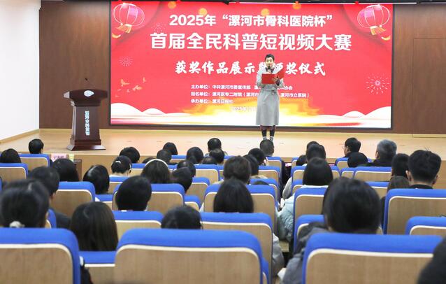 12月25日,由市委宣传部、市科协主办,市骨科医院冠名,漯河日报社承办的2025年“漯河市骨科医院杯”首届全民科普短视频大赛获奖作品展示暨颁奖仪式在市科技馆三楼报告厅举行。活动主办方、承办方和冠名单位代表及市全民科学素质纲要实施工作办公室各成员单位的有关同志、各县区(功能区)科协负责同志、社区群众代表等约150人参加。