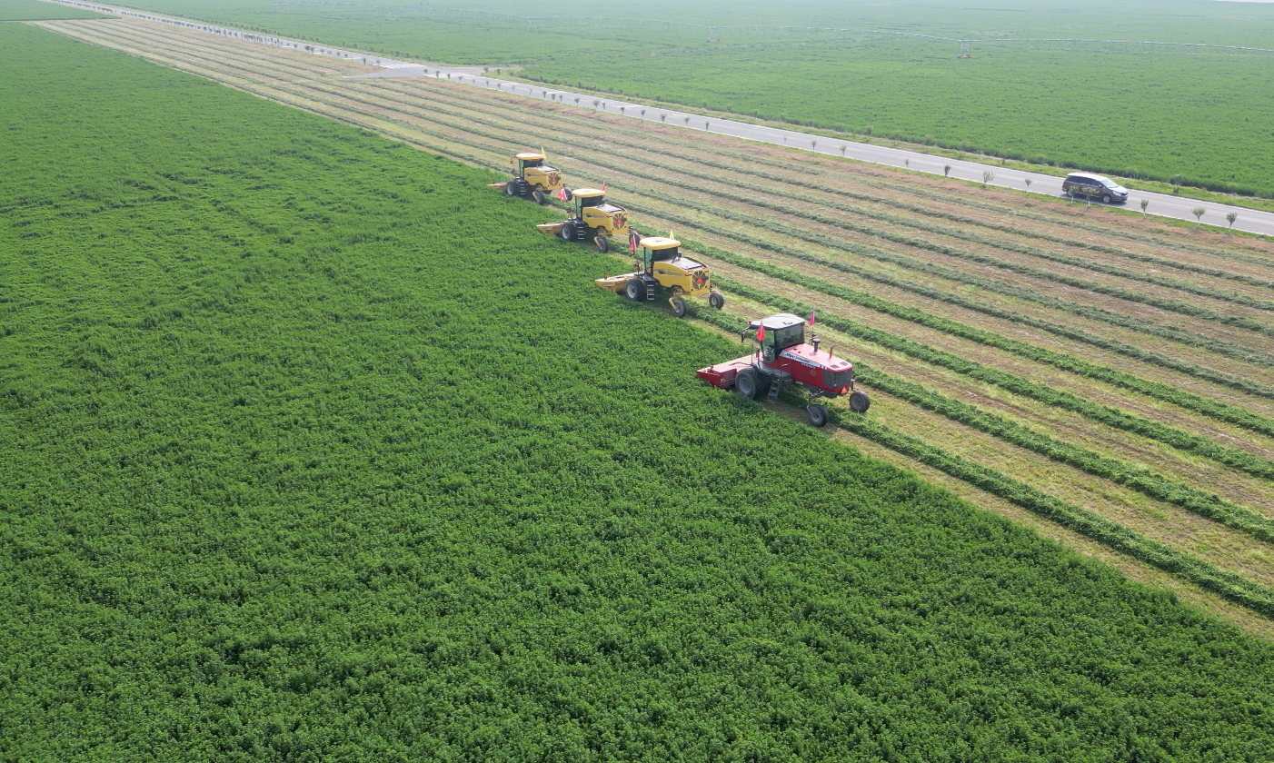 除了提高土壤肥力、增加生态效益,苜蓿种植本身也是饲草产业。而饲草产业的背后,是养殖产业、奶业。