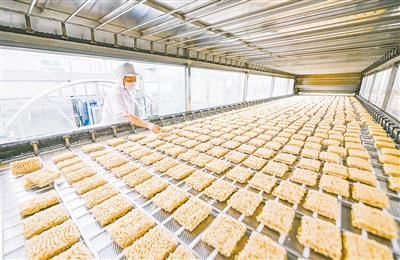 4月6日,记者走进位于经开区的漯河亿家馨食品有限公司生产车间,只见现代化生产线高效运转,一袋袋泡卤类零食经过杀菌、烘干等工序后整齐装箱,运往全国各地。