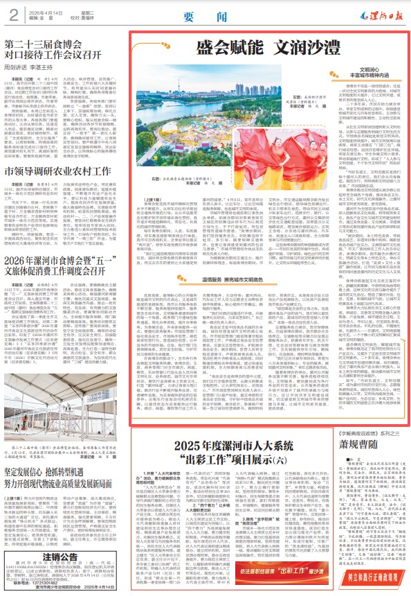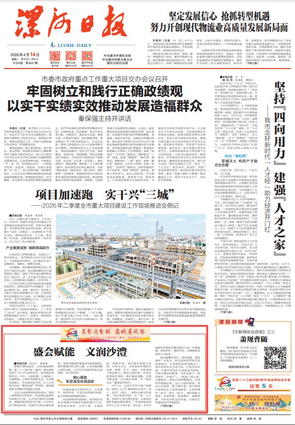 春拂沙澧迎盛会,文明润城展新颜。第二十三届中国(漯河)食品博览会将于4月19日如约而至。我市依托食博会这一平台,以展促建、以展润心、以展树魂,让城市环境更优美、公共服务更暖心、社会风尚更文明,让八方宾客在品味“漯河味道”的同时,真切感受着文明漯河的温度与质感。