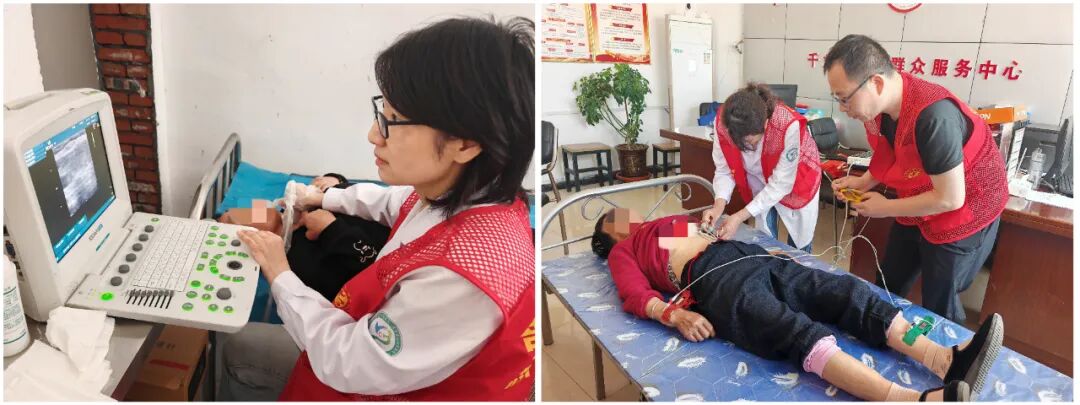 义诊现场,专家们为村民提供了免费眼病筛查、中医康复、血糖检测、血压测量、心电图、B 超检查等医疗服务。各学科专家细致解答村民的咨询,结合其身体状况给出个性化的健康调理建议,并围绕常见疾病、老年病等开展通俗易懂的疾病预防知识科普。对于检查中发现身体存在异常、需要进一步诊疗的村民,专家团队还现场协助建立绿色就诊通道,简化就医流程,为村民后续到院就诊提供便利,有效解决了乡村群众尤其是偏远地区群众看病远、看病难的问题。